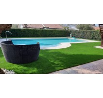 Le gazon naturel demande un entretien constant : arrosage, tonte, scarification, traitement contre les mauvaises herbes. Sur les terrasses, les espaces ombragés ou les sols drainants difficiles, il s'épuise rapidement. Le gazon synthétique 52 mm en mélange de monofilament PE/PP répond à ces contraintes avec une solution durable, posée une seule fois et opérationnelle toute l'année.