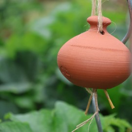 Ce nichoir est le fruit d'un savoir-faire artisanal, façonné à la main dans un atelier situé en Vendée. Il est conçu en terre cuite naturelle non traitée. Ce choix de matériau n'est pas anodin : la céramique offre une excellente inertie thermique et résiste parfaitement aux intempéries. L'abri constitue ainsi un refuge sain, durable et respectueux de l'environnement qui traversera les années.