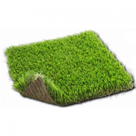 Ce gazon synthétique repose sur une composition de 70% polyéthylène (PE) et 30% polypropylène (PP), avec un DTEX de 13 000 - un indicateur de masse linéique qui traduit une fibre dense, résistante au tassement et à l'aplatissement répété. La structure monofilament garantit des brins individuels, bien distincts, qui restituent l'aspect touffu d'un vrai gazon sans en avoir les contraintes d'entretien.