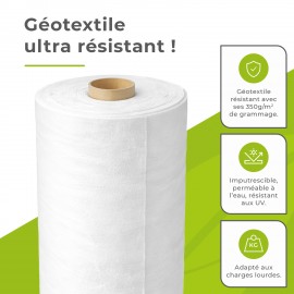 Feutre géotextile 350g/m² pour protection des soubassements et des bâches de bassin.