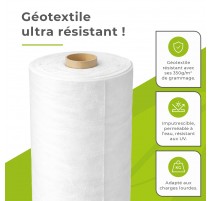 Bonjour , je suis à la recherche d’un Géotextile pour drainant , et je voulais savoir si le Géotextile 350g/m2 de référence : FRA-NB350_25 pouvais être utilisé comme telle ou si je devais prendre plutôt un Geotextile de 250g/m2, car d’après votre site on pense que le 350g s’utilise que pour le soubassement d’une piscine ou bassin... mais pas pour un drainant. Est ce que le 350g laisse bien passé l’eau ? Et est ce qu’il est non tissé? Cordialement Mr Dorange | |