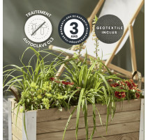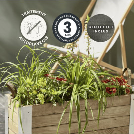 Fabriqué en pin sylvestre certifié PEFC, issu de forêts gérées durablement, ce bac constitue un choix respectueux de l’environnement. Son bois au grain naturel et sa finition soignée lui confèrent un charme authentique et intemporel. Grâce à son traitement autoclave classe 3, il résiste efficacement aux intempéries et garantit une excellente longévité. Il peut également être personnalisé avec une teinte ou un vernis pour s’adapter à votre style extérieur.