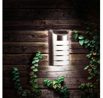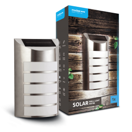 La Modee 106 est une applique murale moderne en acier inoxydable. Son panneau solaire polycristallin se recharge durant la journée et alimente une LED SMD offrant jusqu’à 8 heures d’éclairage nocturne, avec une luminosité de 20 lumens. Sa lumière blanche froide (6000K) assure un éclairage net et efficace.
